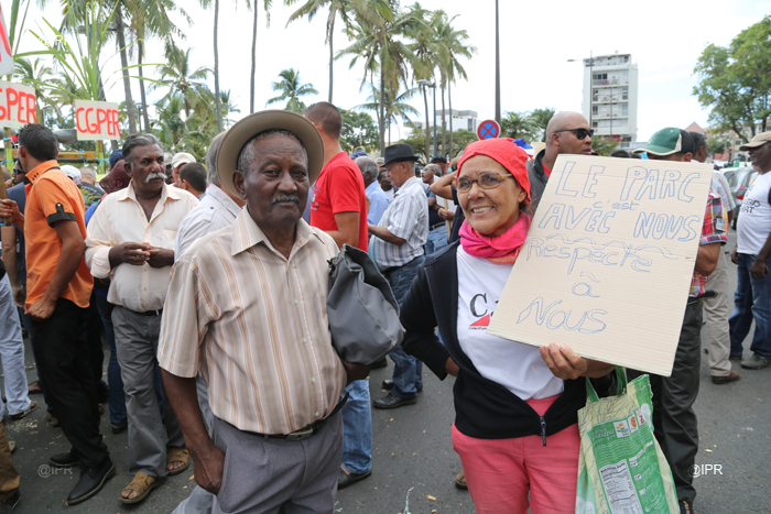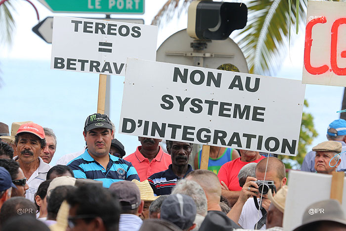 Les délégations de paysans canniers, éleveurs de toutes les filières agricoles ont défilé ce vendredi 20 juin 2014 dans les rues de Saint-Denis depuis l'ancienne gare routière, jusqu'à la préfecture. Ils étaient plus de 500 personnes à manifester leur mécontentement et porter leur revendications au président de la République, à l'occasion de la visite des ministres de l'intérieur et des outre-mer. Reçus par le chef du cabinet de George Pau -Langevin, les planteurs réclament une modification du modèle agricole réunionnais. Les agriculteurs s'inquiètent de la future suppression des quotas sucriers et des prix garantis.
