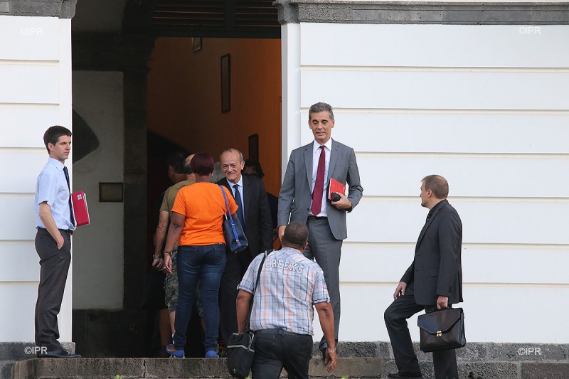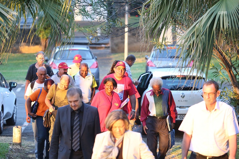 17h50 : L'intersyndicale et la FRBTP sont arrivées à la préfecture. Une délégation de cinq patrons menée par Bernard Siriex est entrée peu avant celle de cinq représentants syndicaux dirigée par Jacky Balmine. Les deux ont été accueillies par le préfet. L'entrée des syndicalistes a été accueillie et saluée à grand cris "Nou larg pas !", "Tous ensemble". Une dizaine de membres de l'intersyndicale patiente à l'extérieur.