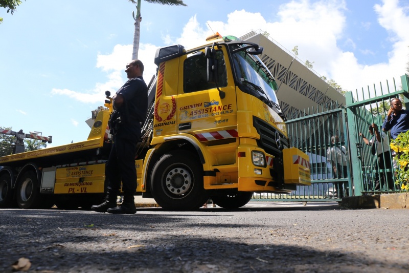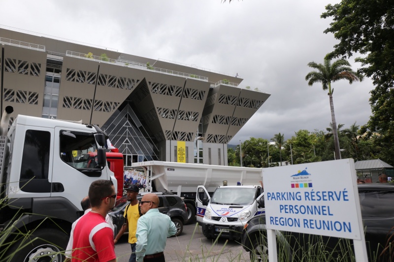 17h07 : Les transporteurs et les représentants d'Egis, le donneur d'ordre pour la NRL, sont arrivés au centre Cadjee, à Saint-Denis, où doit se tenir la réunion.