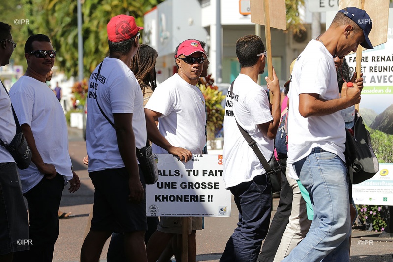 12h20 : La circulation dans les deux sens commence à être bloquée par le cortège au niveau du Barachois. La majorité des voitures font demi-tour. La Crgt conseille aux usagers d'emprunter la RN6 Boulevard Sud.