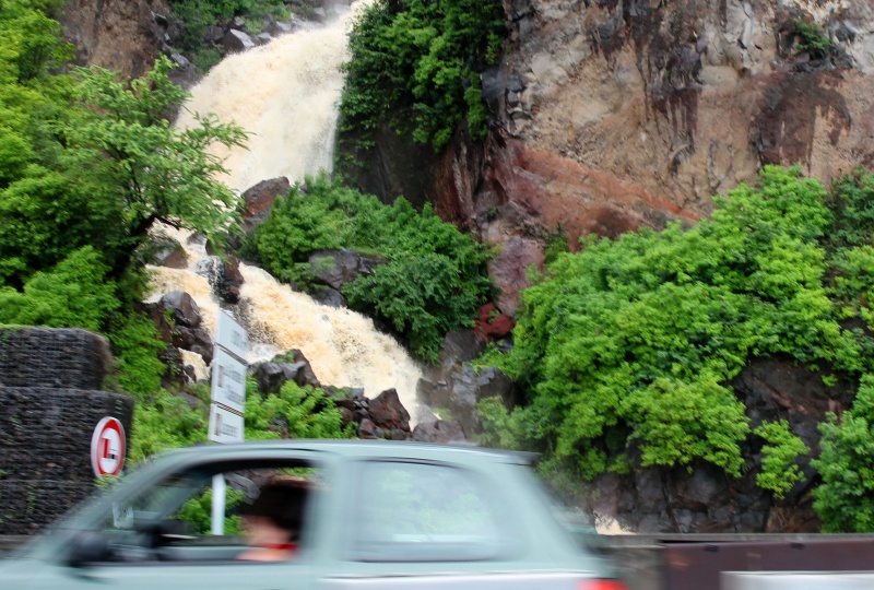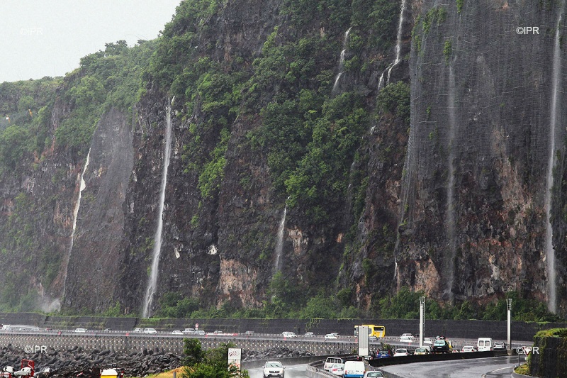 Sur la route du littoral les cascades ont un débit impressionnant en plus de la pluie qui continue de tomber. Sur le réseau, la visibilité est mauvaise et la prudence reste de mise. Il est possible de voir les cascades en vidéo sur la page Facebook Actus Météo 974.