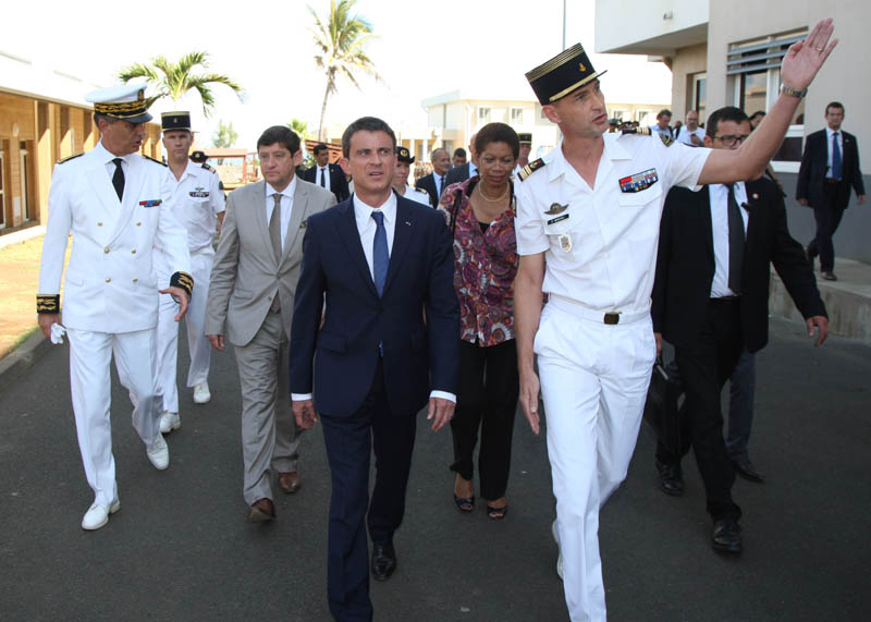 - 12h40 : Manuel Valls est arrivé à Saint-Pierre au RSMA-R (Régiment de service militaire adapté de La Réunion), où il doit inaugurer un nouveau bâtiment et déjeuner avec les jeunes de la caserne. Au menu : rougail saucisses, évidemment.