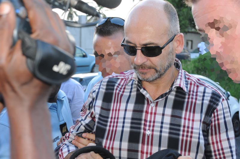 Arrivé vers 14 heures 30 par un vol d'Air Austral ce vendredi 29 novembre 2013 à Mayotte, le capitaine de gendarmerie Gérard Gauthier, ancien patron du GIR (groupement d'intervention régional), est entendu depuis 16 heures (par le juge d'instruction Hakim Karki, a indiqué, à Imaz Press Réunion, Samuel Boscher, rédacteur en chef de France Mayotte Matin. Son audition risque de se prolonger jusque tard dans la nuit. Gérard Gauthier est mis en cause, avec un autre membre du groupement, Christian Lemignant, dans une affaire de stupéfiants (Gérard Gauthier à son arrivée au tribunal de Mamoudzou - Photo Samuel Boscher/France Mayotte Matin).