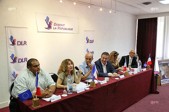 Arrivé ce matin à La Réunion, Nicolas Dupont-Aignan a organisé une conférence de presse ce jeudi 17 avril 2014 pour dévoiler la liste ultramarine de son parti. Pour la première fois, Debout la République sera représenté dans les outre-mer aux élections européennes. Déjà porte-parole à La Réunion du député de l'Essonne lors des élections présidentielles de 2012, Hugues Maillot a été choisi pour conduire cette candidature inédite pour DLR. Les deux hommes ont présenté une liste profondément réunionnaise, revendiquée gaulliste et euro-réaliste.