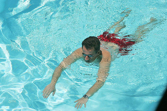 Ah ! Ah ! Ca c'est la photo "interdite" du Quotidien, qui était sortie dans le JIR ! Il y avait les trois quart des journalistes péi autour de la piscine et un troupeau de journalistes "de France" mais personne n'avait osé... oser, sauf...les vrais pros. Sacré poisson quand même, il paraîtrait même qu'il remonte des grands fonds pour venir becquer le ki d'un gros pingouin...