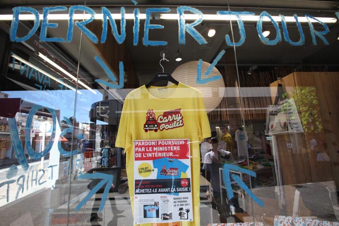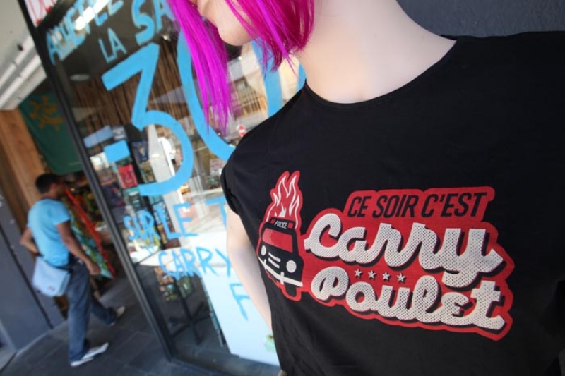 Le directeur de la société Pardon!, Peter Mertès, était convoqué mardi 31 mai 2011, devant le tribunal correctionnel de Saint-Denis à la demande du ministère de l'Intérieur qui, estime que ses t-shirts " carry poulet ", constituent une incitation à la violence envers les forces de l'ordre. L'avocate de le marque réunionnaise, Catherine Chane Meng Hine, invoque la liberté d'expression, " pas toujours facile à admettre ". Le ministère de l'intérieur demande l'arrêt de la diffusion de ces t-shirts, assorti d'une astreinte de 100 euros par jour d'infraction constatée. Le tribunal rendra son verdict mercredi en fin d'après-midi.
