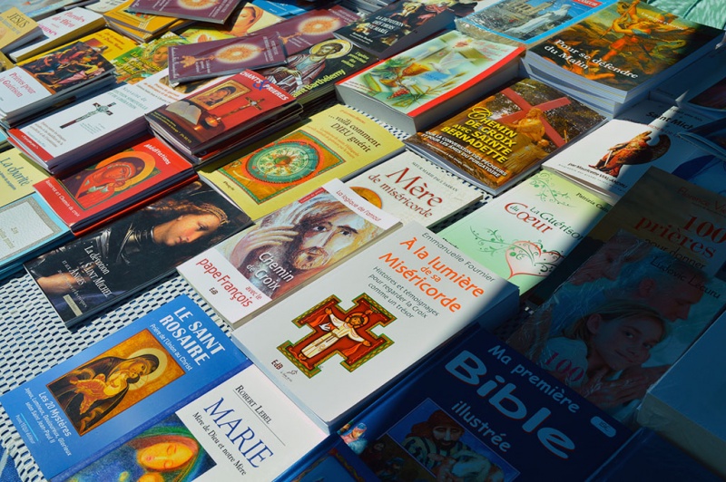 Bonjour, bonne initiative mais de mon cÃ'té, je recherche l'image qui est sur le chapeau de la dame ou quelle boutique religieuse vendaient sur l'étal ce jour là (5 mai 2016), s'il vous plait, merci par avance; Cordialement Marie