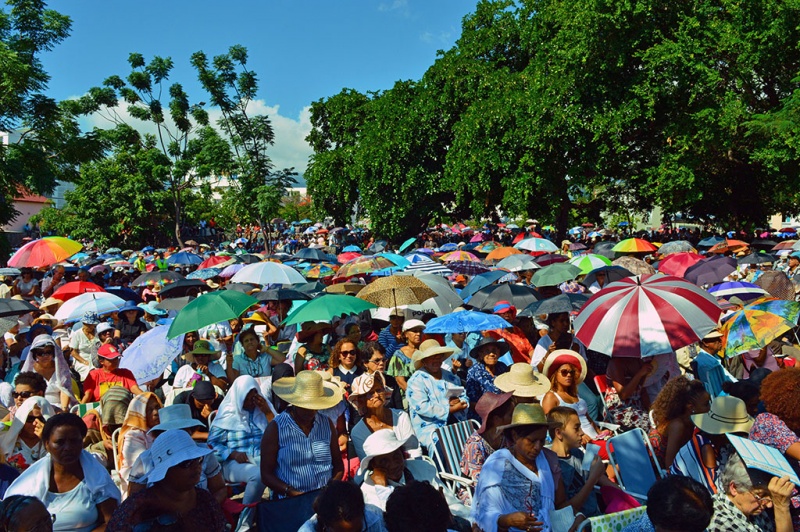 Ce jeudi 5 mai 2016 était célébrée à 10h00 la messe de l'Ascension sur l'Esplanade du Saint-Esprit au Chaudron à Saint-Denis. Dans le même temps, l'évêque de La Réunion, Gilbert Aubry a célébré les 40 ans de son épiscopat. Plusieurs milliers de fidèles étaient présents. L'évêque a remercié les représentants des diocèses de la zone Océan Indien et a appelé à la paix entre les peuples. Il a ensuite célébré la messe de l'Ascension - montée de Jésus-Christ vers le ciel - en créole, devant un public arrivé dès 6h30 pour s'installer à l'ombre. (Photos Johanna Martin)