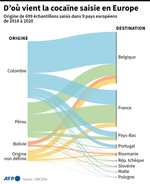 Mais les trafiquants ont déjà ouvert des "itinéraires bis" vers des ports moins surveillés. C'est le cas de Montoir-de-Bretagne, près de Saint-Nazaire (ouest) en France, où près de 600 kilos de "coke" ont été saisis en 2022.