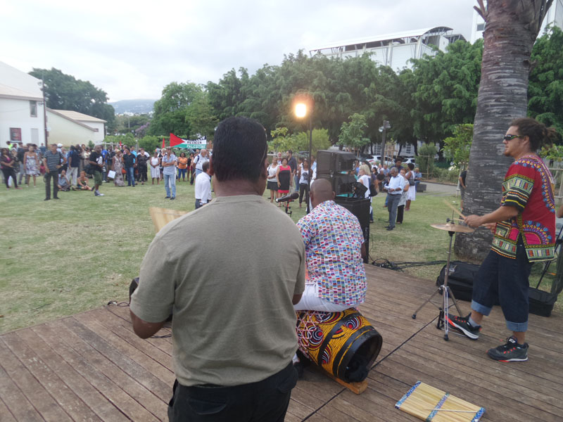 Alors que les députés ont adopté (339 voix pour, 151 contre) ce mardi 2 décembre 2014 une résolution encourageant le gouvernement à reconnaître l'État palestinien, un rassemblement de soutien a réuni en parallèle près de 200 personnes sur le parvis des Droits de l'homme de Champ-Fleuri, à Saint-Denis, à l'initiative de la députée socialiste Ericka Bareigts. "Cette résolution est une petite goutte car elle n'a pas force d'obligation, mais elle participe à un mouvement qui est en marche au niveau européen", a souligné la parlementaire. "Si on répond à la violence par l'inaction, on donne raison à ceux qui utilisent la violence", a-t-elle ajouté en réponse aux détracteurs de cette initiative.