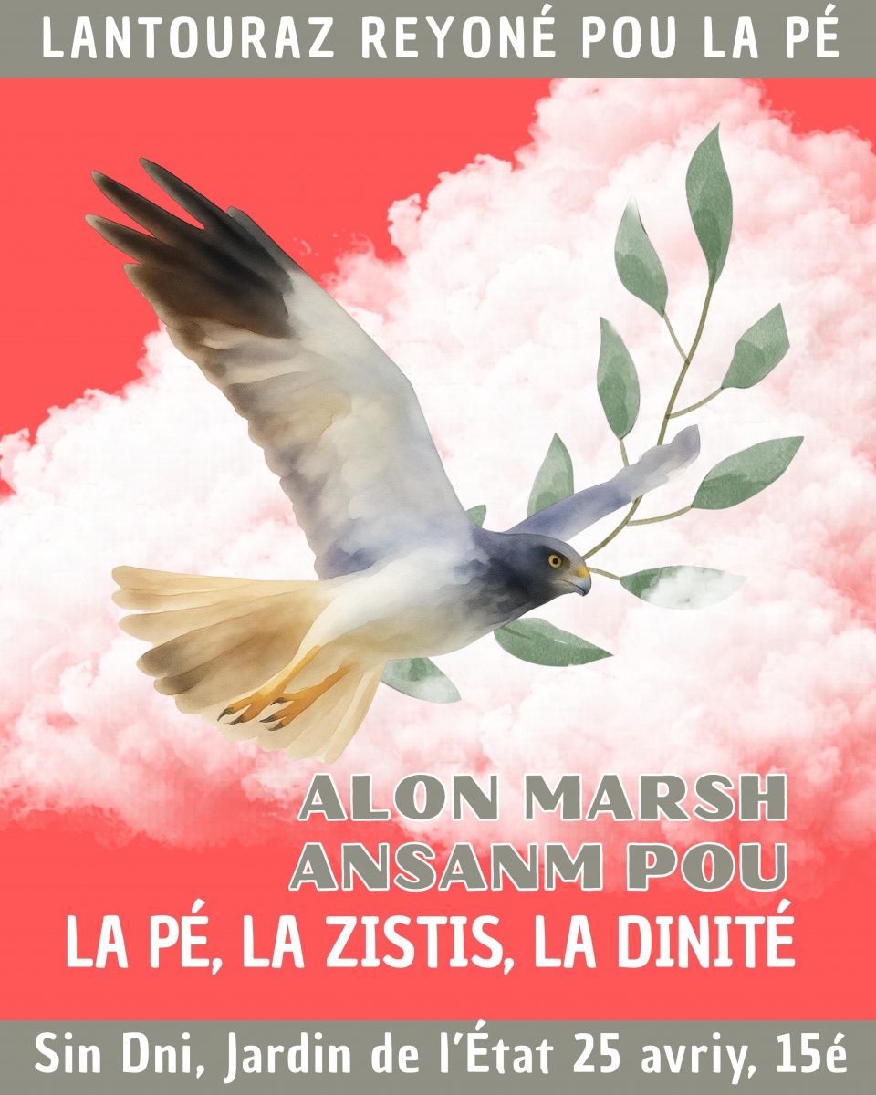 Lantouraz RĂ©yonĂ© pou la PĂ© appelle Ă une marche pour la paix ce samedi 25 avril 2026. Le dĂ©part sera donnĂ© Ă 15h du Jardin de l'Etat Ă Saint-Denis. La marche vise Ă "lutter ensemble pour la paix, la justice et la dignitĂ© pour tous les peuples" notent les organisateurs (Photo dâillustration www.imazpress.com)