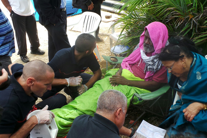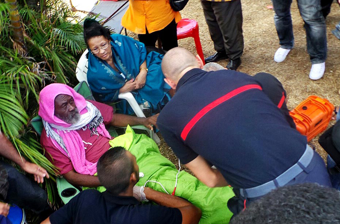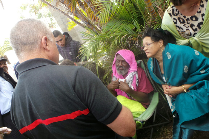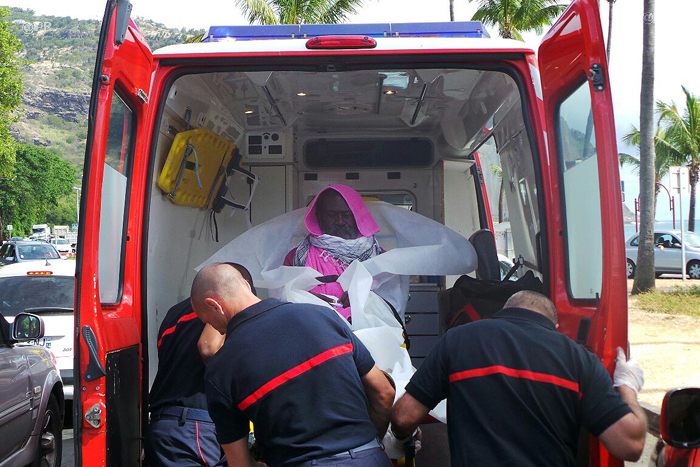 En grève de la faim depuis le lundi 15 juillet dernier devant la préfecture (Saint-Denis), Samuel Mouen a été transporté ce jeudi 25 juillet 2013 en ambulance au CHU (centre hospitalier universitaire) de Bellepierre à Saint-Denis, sur les recommandations du SAMU. Il doit passer des examens médicaux. Les examens terminés, le porte-parole des Indignés 974 devrait ensuite regagner sa tente installée au Barachois. Très affaibli, Samuel Mouen se dit toujours aussi déterminé à poursuivre son "combat" pour la défense du pouvoir d'achat des plus démunis et le maintien du RSTA (revenu supplémentaire temporaire d'activité). Il a d'ailleurs reçu ce jeudi matin la visite de Jean-Hugues Ratenon, président de l'Alliance des Réunionnais contre la pauvreté (ARCP) et membre de Rezistans, de retour de Bruxelles. Après s'être entretenus pendant quelques minutes dans la tente de Samuel Mouen, les deux hommes ont lancé un appel commun à la mobilisation pour ce dimanche 28 juillet 2013. À noter que le porte-parole des Indignés 974 devrait tenir une nouvelle conférence de presse ce jeudi après-midi.