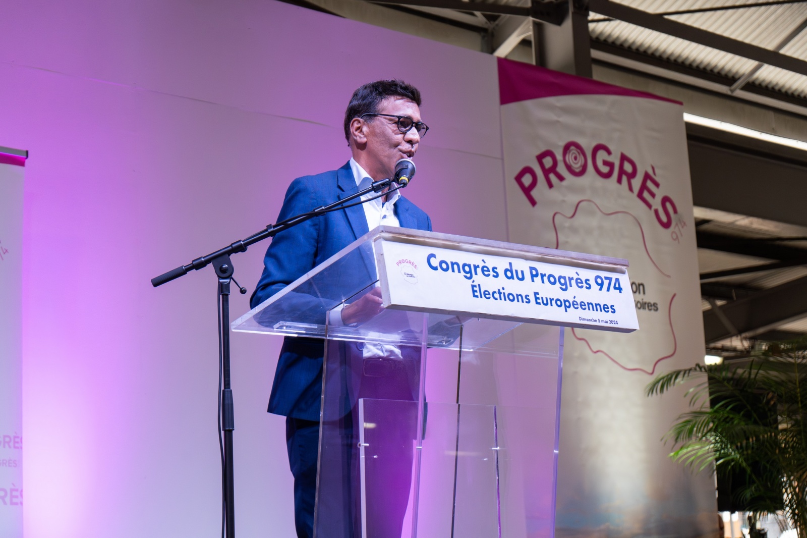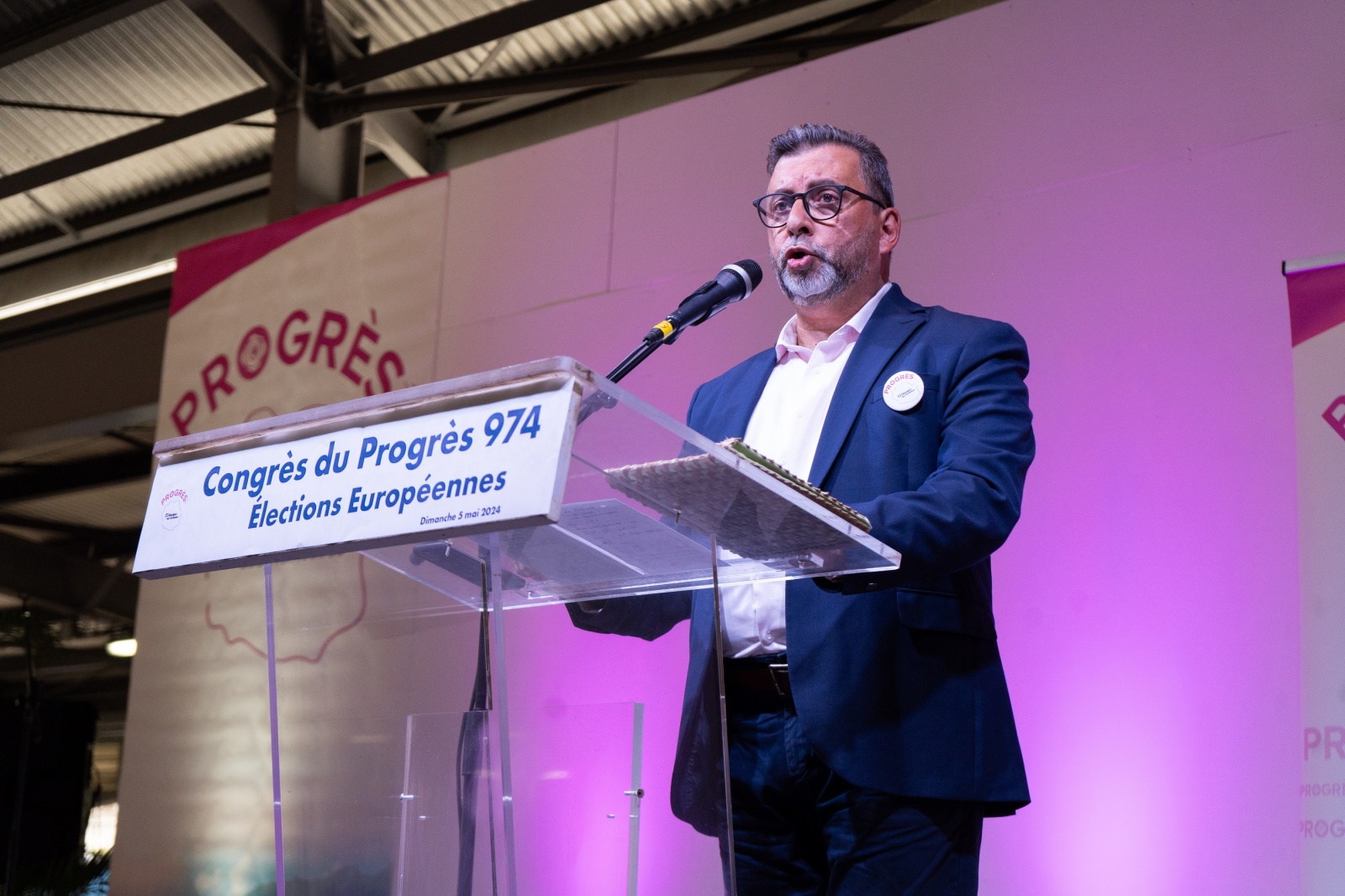 Ce dimanche 5 mai, le Progrès 974 tenait son congrès annuel, à Saint-Joseph, sous la Halle de la Place François Mitterrand, dans le cadre de la campagne des élections européennes. A cette occasion, étaient réunis les principaux soutiens de la candidature de Younous Omarjee, 2eme sur la liste de la France Insoumise conduite par Manon Aubry (Photo D.R.)