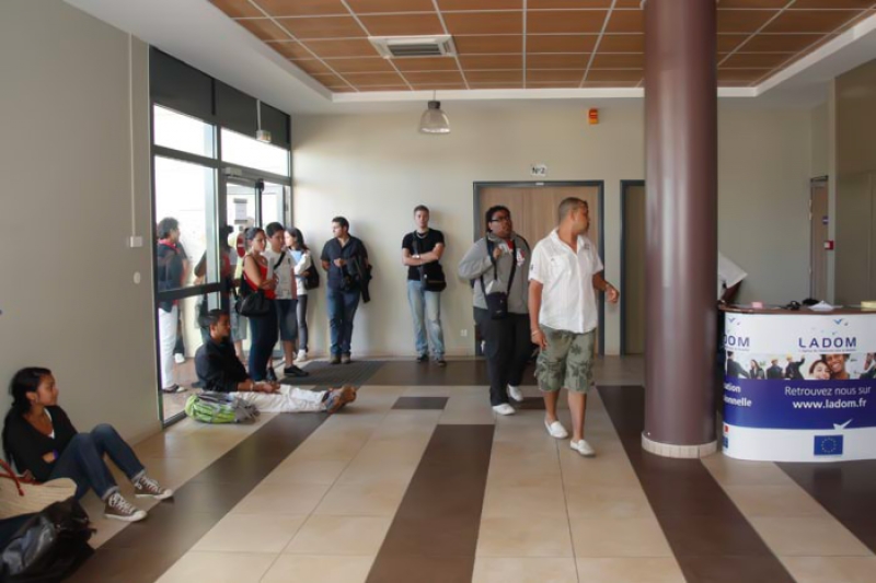 Dans le hall d'entrée de l'immeuble Quartz à Saint-Denis ce jeudi matin 28 juillet 2011. Une bonne trentaine de personnes attend son tour pour accéder au bureau de LADOM (l'agence de la mobilité pour l'Outre-mer) situé au quatrième étage. Beaucoup sont là pour bénéficier du "passeport mobilité études", une aide à l'achat du billet d'avion des jeunes partant étudier hors de La Réunion. Les usagers critiquent les dysfonctionnements de l'agence, dont l'attente, le mauvais accueil, l'indisponibilité des agents ou encore le long traitement des dossiers. Le délégué régional de la structure étant "hors département est injoignable" selon son secrétariat, il est impossible d'avoir des explications sur la situation.