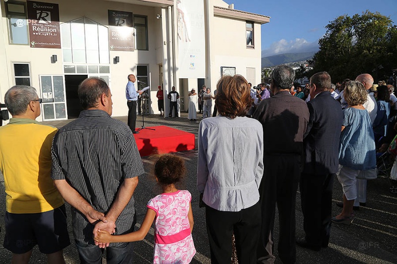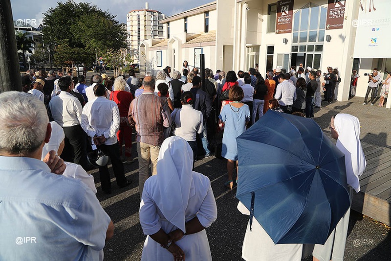 Devant un parterre d’élus et sous quelques gouttes, de responsables religieux, de militants associatifs, le président du conseil régional du culte musulman a ouvert le bal à la tribune, suivi par la présidente de la ligue des Droits de l’homme Isnelle Gouljar, la présidente du conseil régional Nassimah Dindar, la vice-présidente de la Région Fabienne Couapel-Sauret, le sénateur Paul Vergès et l’évêque de La Réunion Monseigneur Aubry.