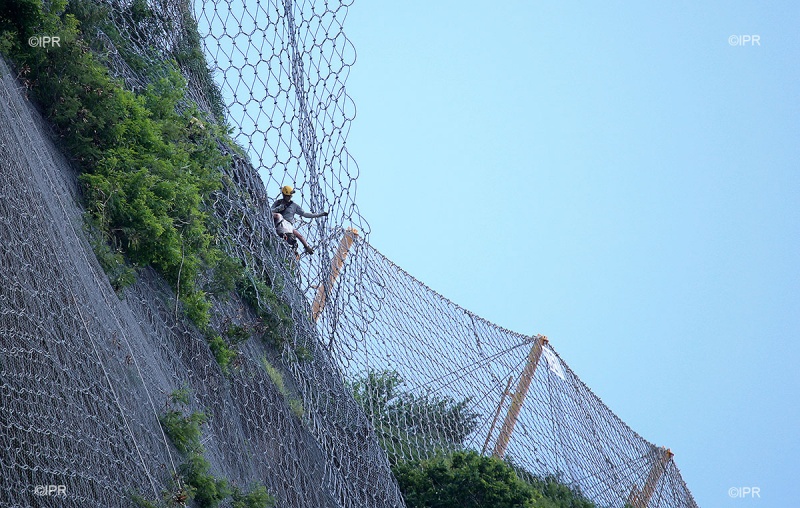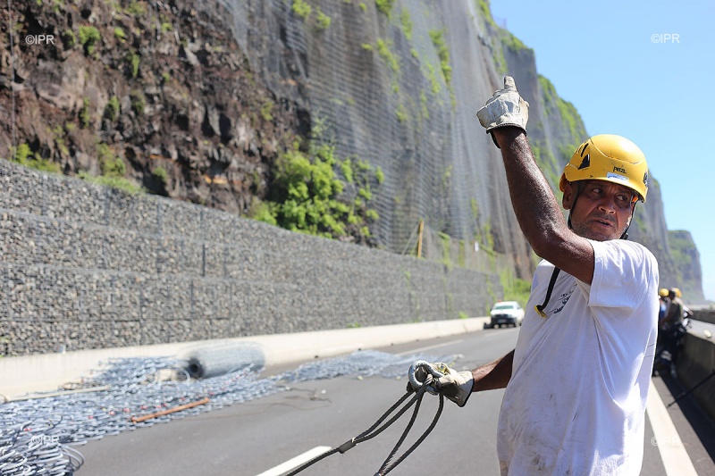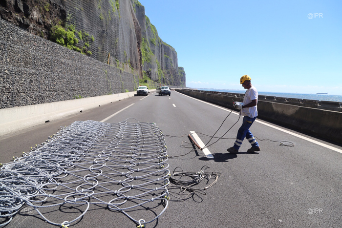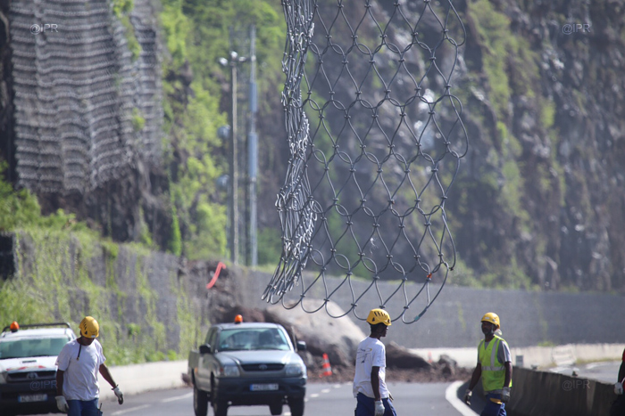 "Les travaux avancent plutôt bien, les cordistes ont pu déjà poser la totalité des portions hautes de grillages qu’ils sont en train de fixer sur place. Demain on va pouvoir poser les premières sections de filets", a précisé de son côté Eric Boîteux, directeur de l’exploitation et de l’entretien des routes à la Région Réunion.