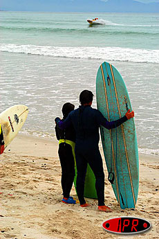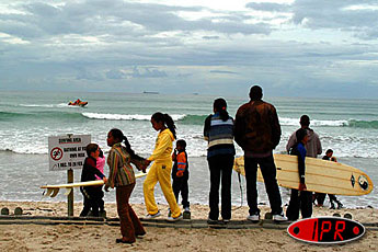 Tout à coup un bateau rejoint les surfers alors qu'un garde cote s'époumone depuis la plage à fin de faire sortir tout ce beau monde à l'aide d'un argument de poids : "White Shark!" ("requins blancs"). Cela explique la présence du panneau planté dans le sable et précisant que toute baignade se fait sous sa propre responsabilité. La déception des jeunes sportifs est grande tant et si bien que certains se demandent après le départ du bateau, s'ils ne vont pas se remettre à l'eau. C'est oublier qu'au mois de mai 2004 un jeune garçon de 16 ans y a laissé une jambe et qu'à quelques coups de nageoires de là, autour de "Seals Island" une activité est en plein essor : la plongée en cage pour observer les grands blancs.