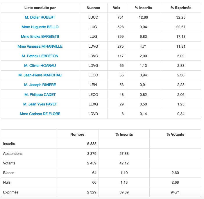 Le président de Région sortant, Didier Robert, arrive en tête de ce premier tour à l'Entre-Deux avec 32,25% des votes. Huguette Bello le suit de loin, avec 22,67% des voix. Ericka Bareigts arrive en troisième position, avec 17,13%. Vanessa Miranville réussit une nouvelle fois à dépasser les 10% sur une commune, avec 11,81% des suffrages (Photo d'illustration rb/www.ipreunion.com)