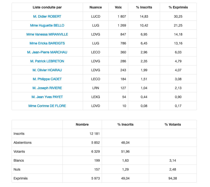 Le président sortant de la Région termine en tête le premier tour des régionales avec 30,25%. Il est suivi par Huguette Blelo (21,25%) et Vanessa Miraville (14,18%° (Photo photo d'archive RB imazpress)