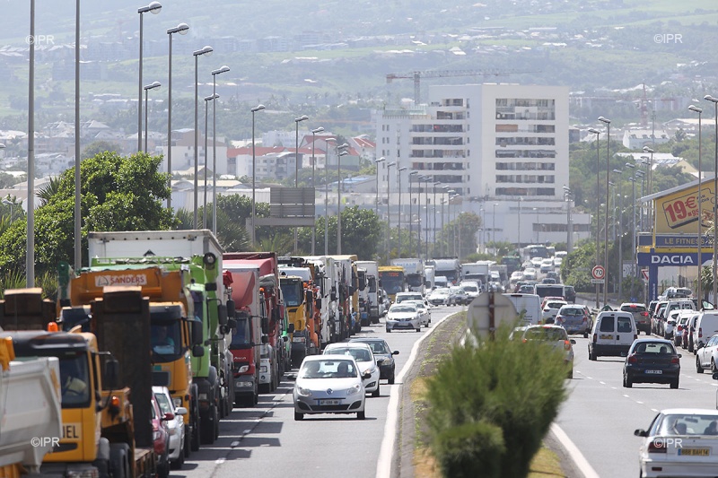 Ce matin voitures ont roulé au ralenti à Saint-Denis. La nationale 1 était totalement bloquée (dans le sens nord - ouest) depuis le haut du boulevard Lancaster (au niveau du Chaudron) jusqu'à la zone des Potences. Selon la Direction régionale des routes, cela représentait 5 kilomètres de bouchons.