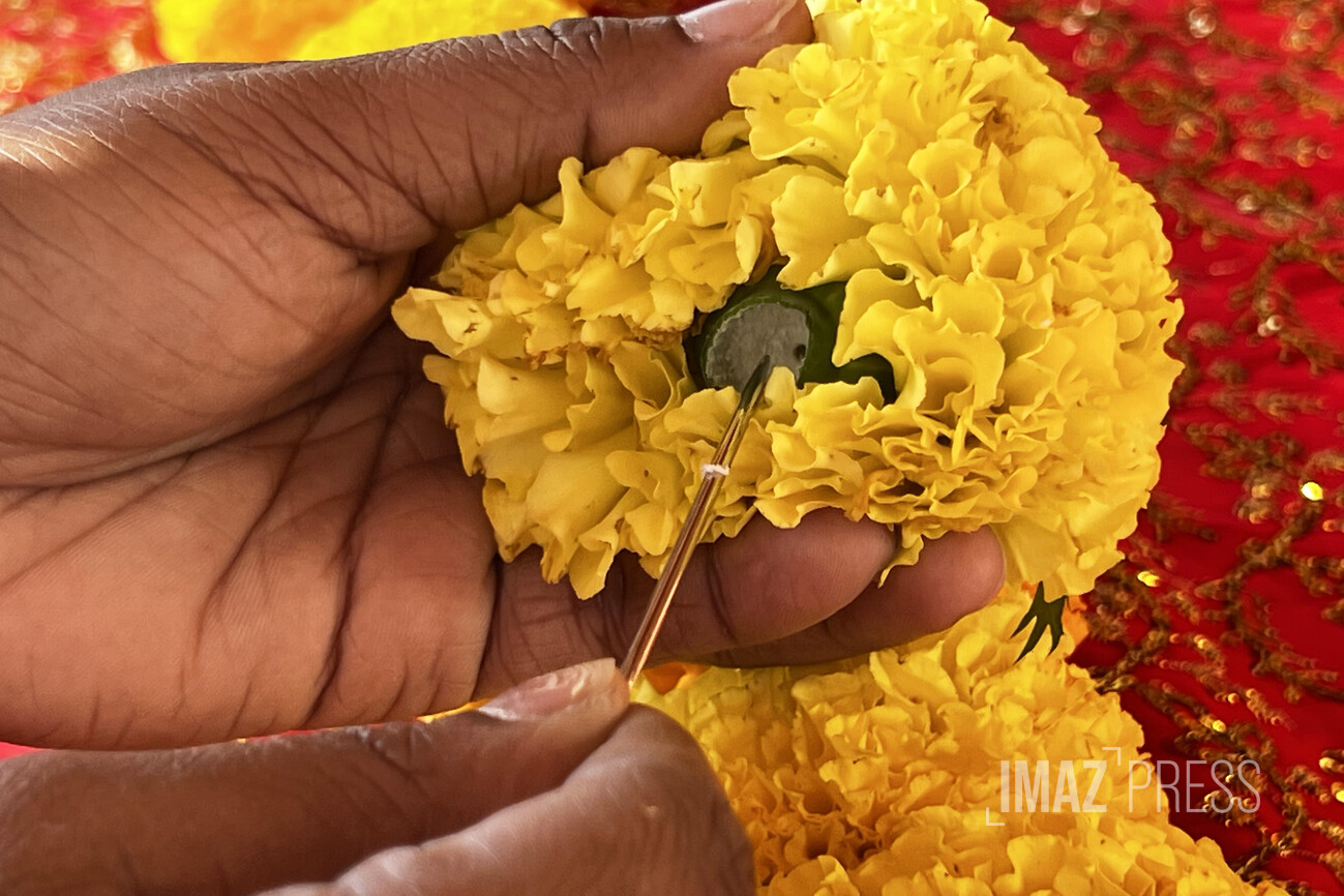 Le président explique que "toutes les fleurs sont importantes dans la religion mais les oeillets d'inde sont plus avantageux au niveau qualité prix. Ils ne sont pas trop chers et désormais il est possible d'acheter uniquement les fleurs". L'étape de couper les fleurs de la tige est donc éliminée.