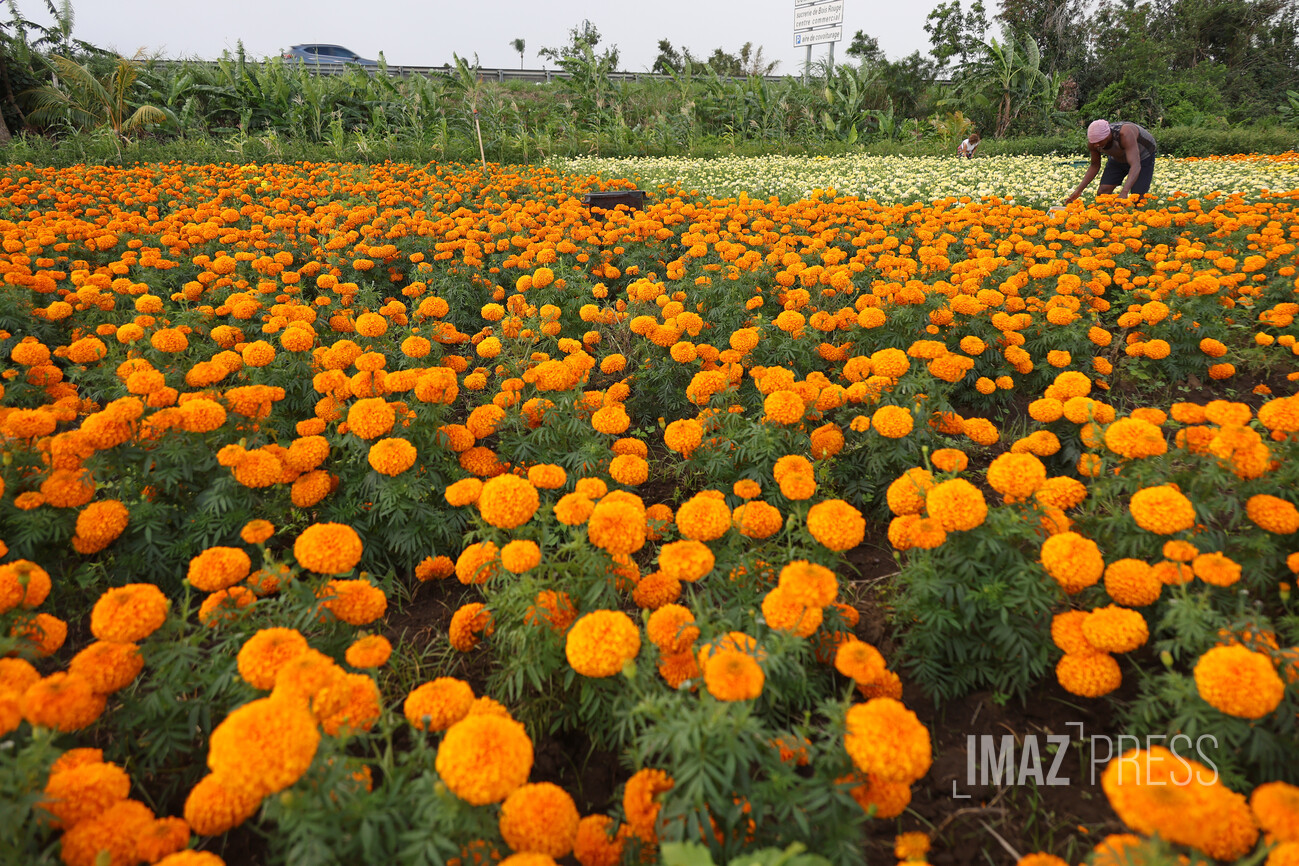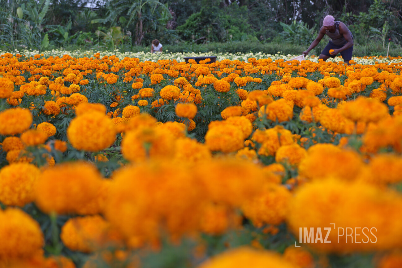 Ces fleurs décoratives fleurissent toute l'année mais juillet-août est une grosse période pour le cultivateur. En effet, la religion tamoule célèbre en ce moment de nombreuses fêtes. Pour les différentes cérémonies et les marches sur le feu, Jérôme vend ses fleurs aux fidèles sans intermédiaires. Ils passent commande, Jérôme ramasse et les acheteurs viennent récupérer leurs caisses de fleurs qui serviront à faire des colliers de fleurs appelés marliépou.