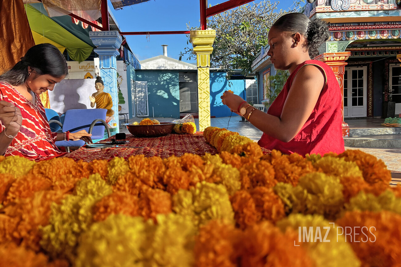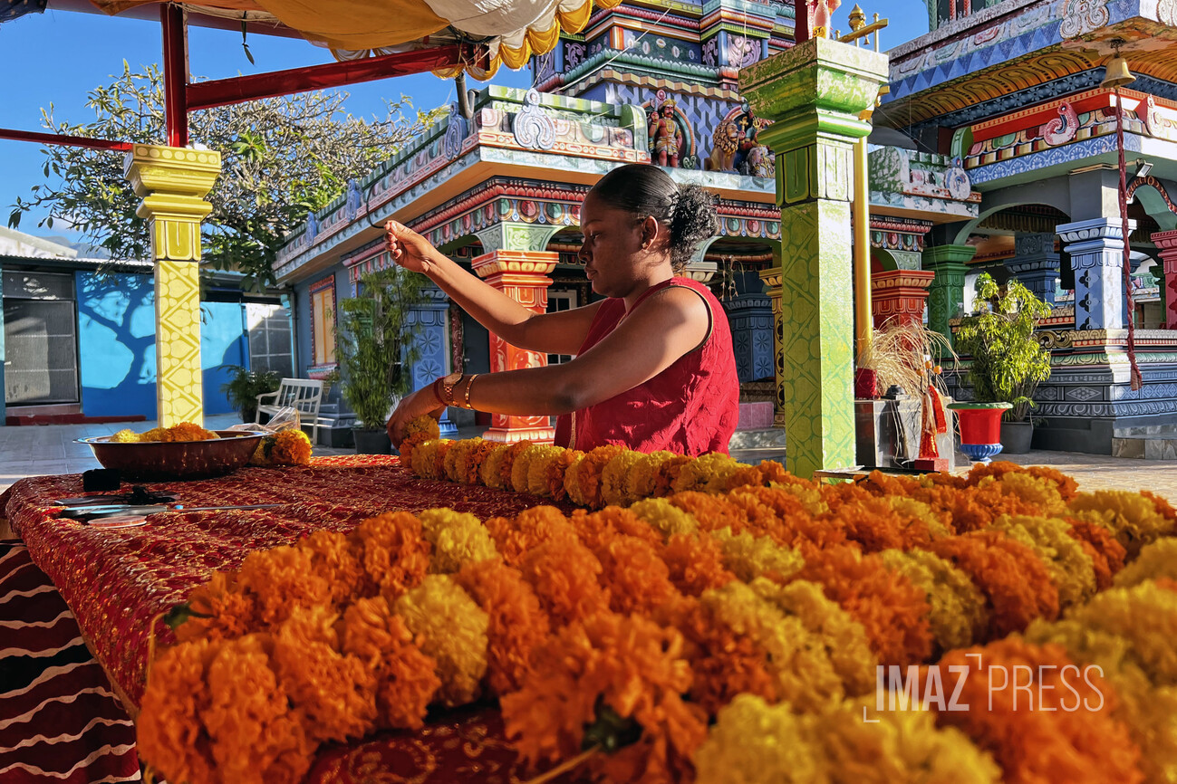 Depuis le mois de mai jusqu'au mois d'août, les tamoules célèbrent plusieurs fêtes. "Les temples organisent des marches sur le feu, des fêtes en l'honneur des déesses Kâli et Mariamman, déesses très priées à La Réunion. Les fleurs représentent une bénédiction des divinités". Pendant la marche sur le feu, la plupart des pénitents vont porter un collier de fleurs dans leur cou pour représenter la divinité et se faire bien devant la divinité" explique Renaldo. "Les pénitents qui portent du lait sur la tête et qui ont des aiguilles sur la tête auront également ce collier de fleurs autour du cou".
