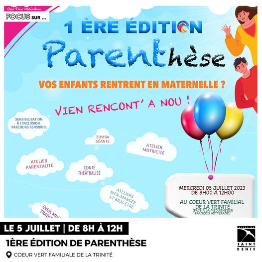Ce mercredi 7 juillet 2023, Oser pour l'éducation organise "PARENThèse", une matinée portes ouvertes pour les parents et les enfants en transition de la crèche vers l’école. Ateliers, activités, jeux ou encore stands d’information, plusieurs animations seront proposés aux parents. Ils auront aussi la possibilité de participer des activités interactives avec leurs enfants adaptés à leur âge. Ci-dessous nous publions le communiqué de la ville de Saint-Denis (Photo: www.imazpress.com)