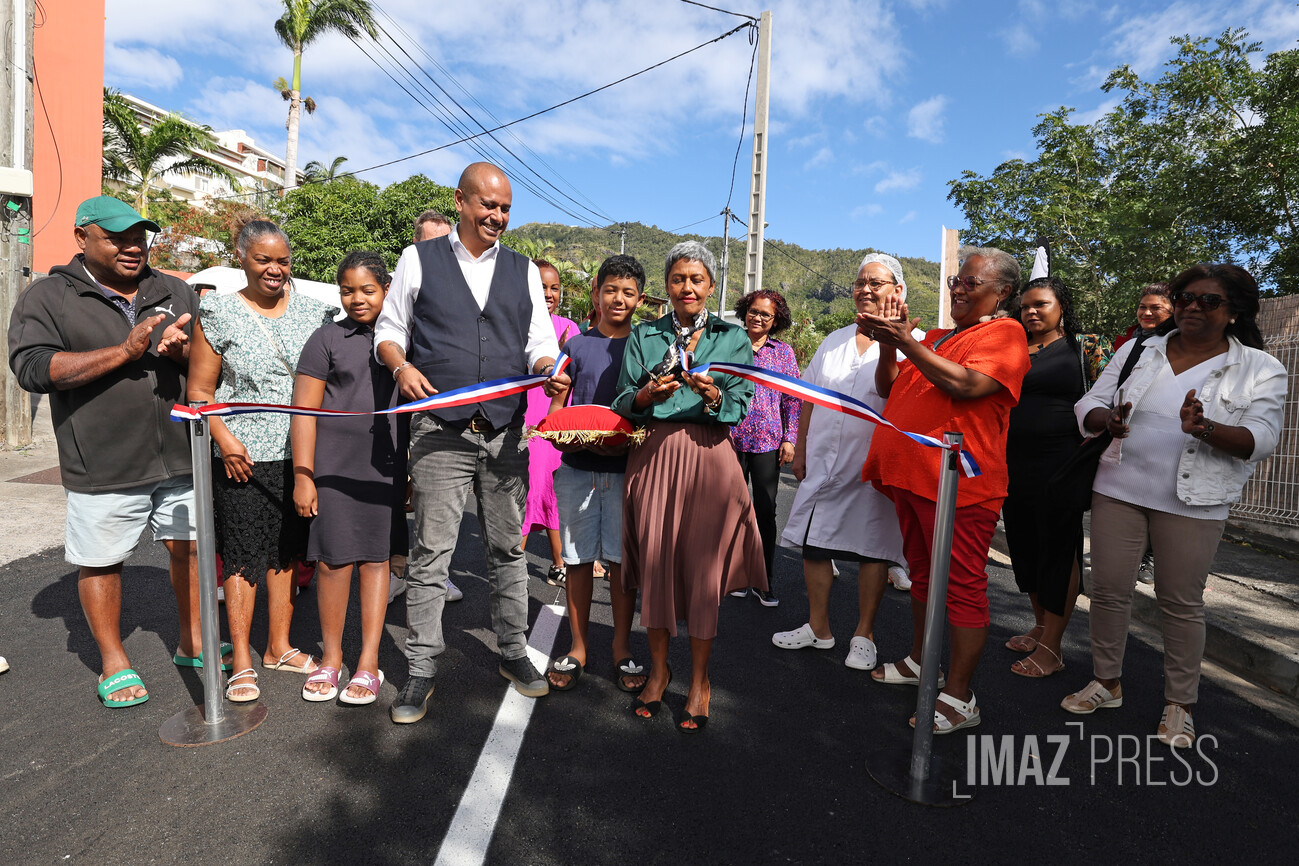 La maire de Saint-Denis, Ericka Bareigts, s'est rendue ce lundi 18 août 2025, à la réception des travaux de l'Allée des Saphyrs : un axe majeur de Bellepierre, reliant le quartier de La Source à la route départementale. Un chantier de 1,3 km de voirie, réalisé pour un montant de 575.000 euros, qui s'inscrit dans le programme annuel de la municipalité consacré à la voirie. (Photos sly/www.imazpress.com)