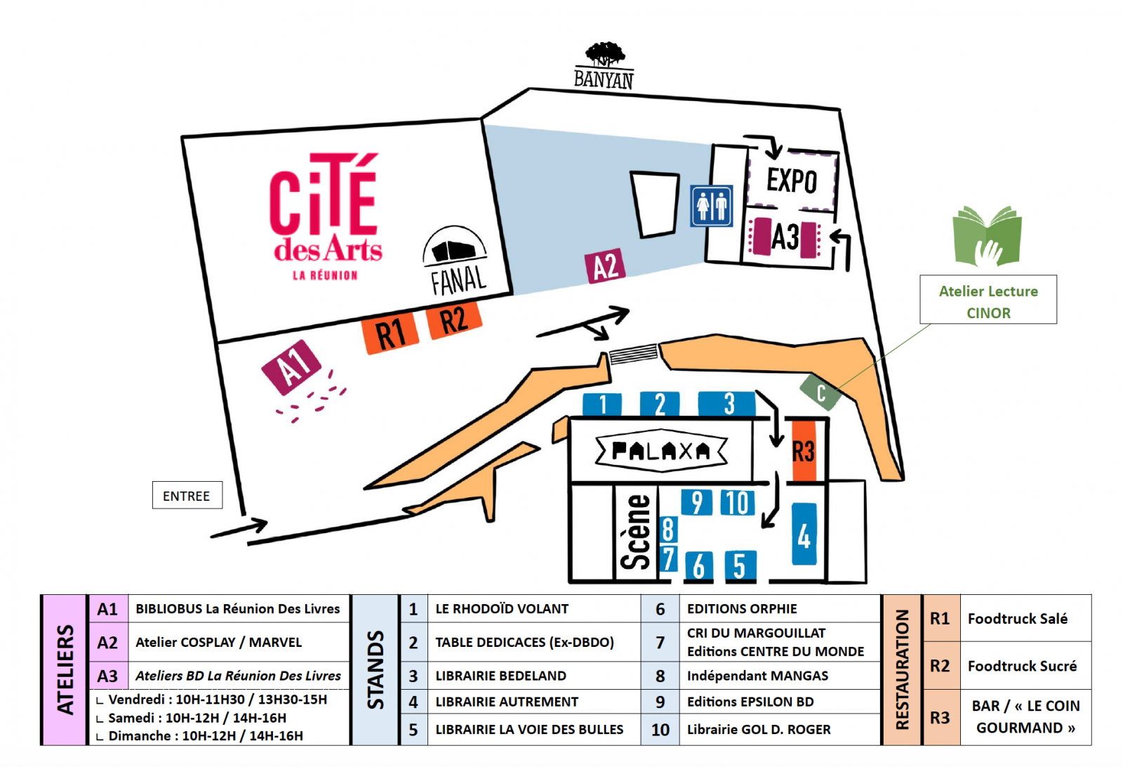 • D’installer pendant trois jours, du 28 au 30 novembre 2025, un espace de vente (libraires de la Réunion, maisons d’éditions, associations), de rencontres, d’échanges et de dédicaces entre le public réunionnais et une cinquantaine d'auteurs de La Réunion, des différentes îles de l’océan Indien et d'Europe.