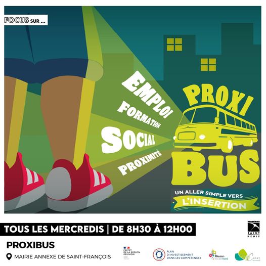 Ce mois de juillet marque le retour du Proxibus, "un aller simple en bus " vers l’insertion professionnelle. A bord du Proxibus, les jeunes de 16 à 29 ans pourront se dispenser d’un accompagnement personnalisé avec des éducateurs spécialisés dans l’insertion sociale et professionnelle. Au programme orientation et information, conseils, offres d’emplois et de formation et aide à la rédaction de CV. Ce bus de proximité stationnera tous les mercredis jusqu'au 26 juillet 2023 inclus à la mairie annexe de Saint-François de 8h30 à 12h00.