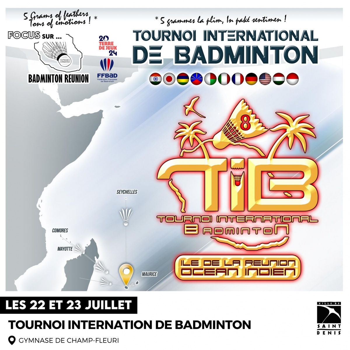 Du samedi 22 au dimanche 23 juillet 2023, la ville de Saint-Denis accueille la huitième édition du Tournoi international de badminton. Organisé par la Ligue nouvelle du badminton réunionnaise, plusieurs nations des Outre-mer seront présentes lors des compétitions. Deux jours de sport où se joueront 250 matchs. Ci-dessous le communiqué (Photo: Pana Reeve)