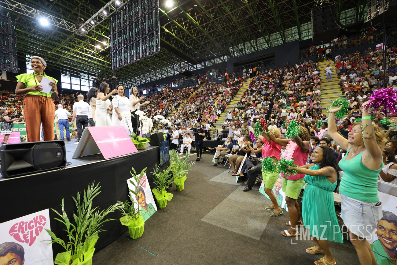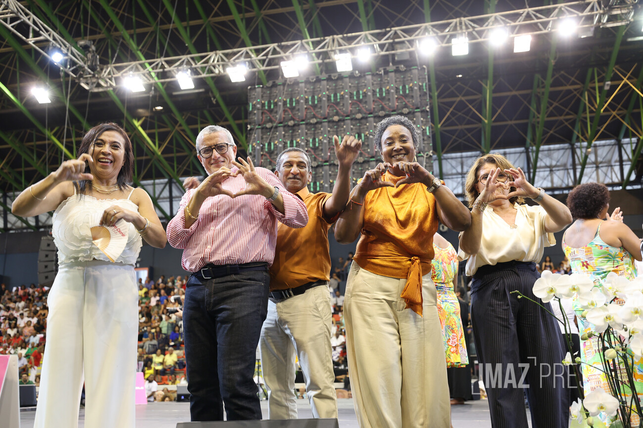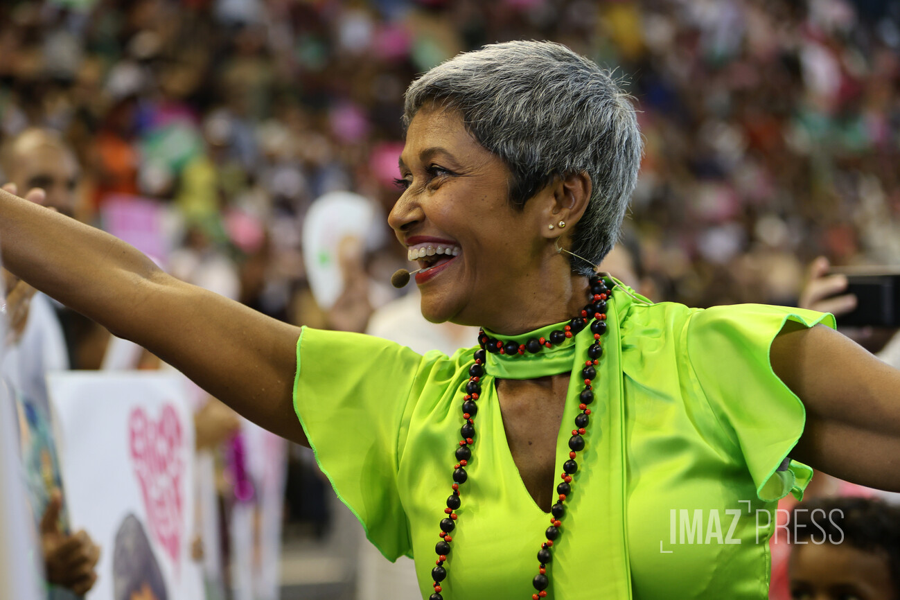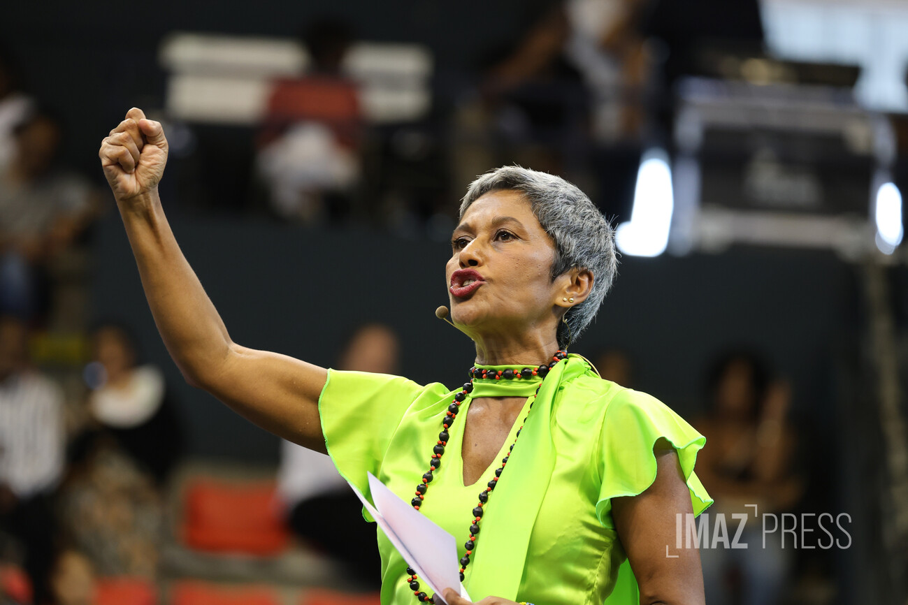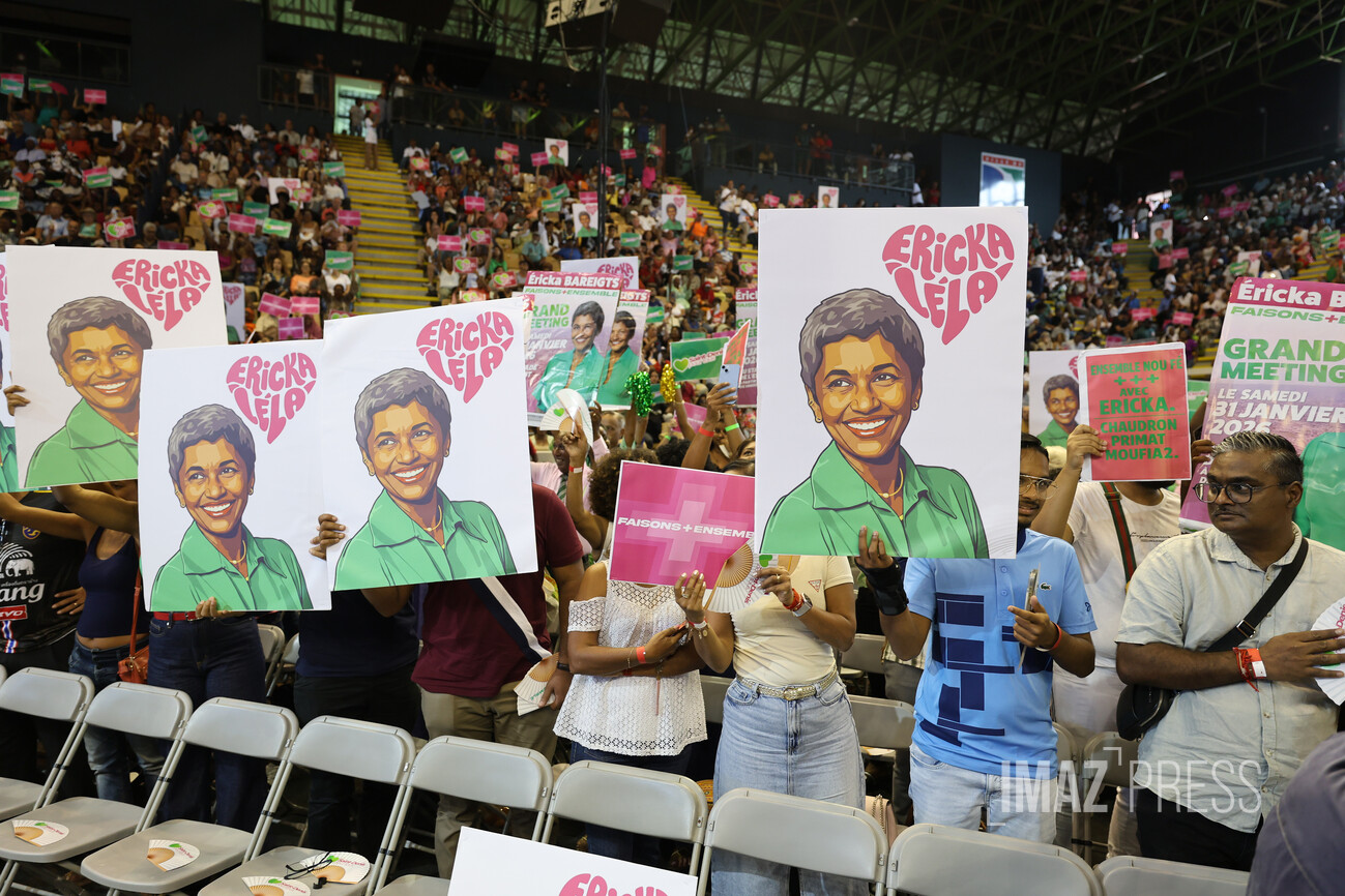 C'est au cœur du Petit Stade de l'Est à Saint-Denis, où plus de 7.000 militants se sont rassemblés, qu'Éricka Bareigts est arrivée sous les acclamations pour son meeting de campagne. Une salle, du public et surtout au milieu, un podium, hissé tel un ring. Le slogan y est affiché, "Saint-Denis pour tous". La maire de Saint-Denis avait officialisé sa candidature pour les municipales le 15 novembre 2025 sur les réseaux sociaux. Les élections municipales auront lieu le dimanche 15 mars et le dimanche 22 mars 2026 (Photos : sly/www.imazpress.com)