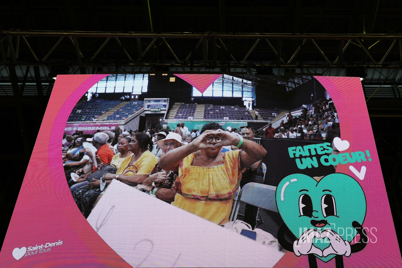 "Nous avons eu un mandat exceptionnel, d'une rare difficulté et je me dis que si vous êtes si nombreux cet après-midi, c'est parce que durant ce mandat, nous avons traversé de grandes difficultés et ensemble, dans la confiance, nous avons su mobiliser la force, la résilience qui a fait que Saint-Denis est debout", déclare la candidate.