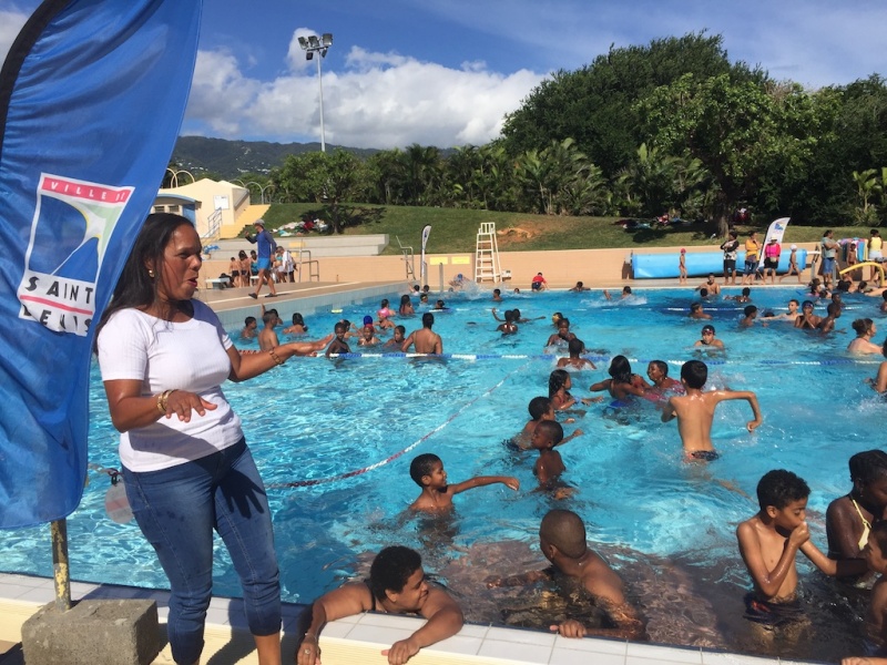 L'objectif étant de rassembler tous les jeunes autour d'activités communes, "nous invitons au sein de la même école les élèves d'un classes Ulis (unités localisées pour l'inclusion scolaire), et d'une classe non Ulis " explique Brigitte Hoarau, adjointe au maire de Saint-Denis et déléguée au handicap, applaudie par les centaines de marmailles attendant d'entrer dans l'eau.