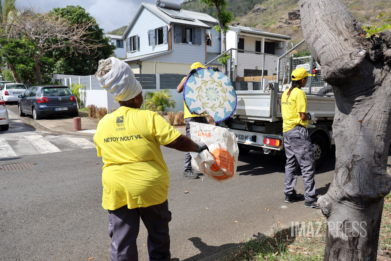 La ville de Saint-Denis a décidé de renouveler son opération Netoy Nout Vil, en partenariat avec Citeo. La deuxième édition a débuté ce matin à 7h30, place Tortue dans le quartier Bas de la Rivière, Petite-île. 15 quartiers vont être nettoyés durant l'action qui s'achève ce jeudi 31 octobre. Objectifs: assainir les quartiers et lutter contre la pollution mais aussi les maladies comme le chikungunya, la dengue ou encore la leptospirose. (Photo : sly/www.imazpress.com)