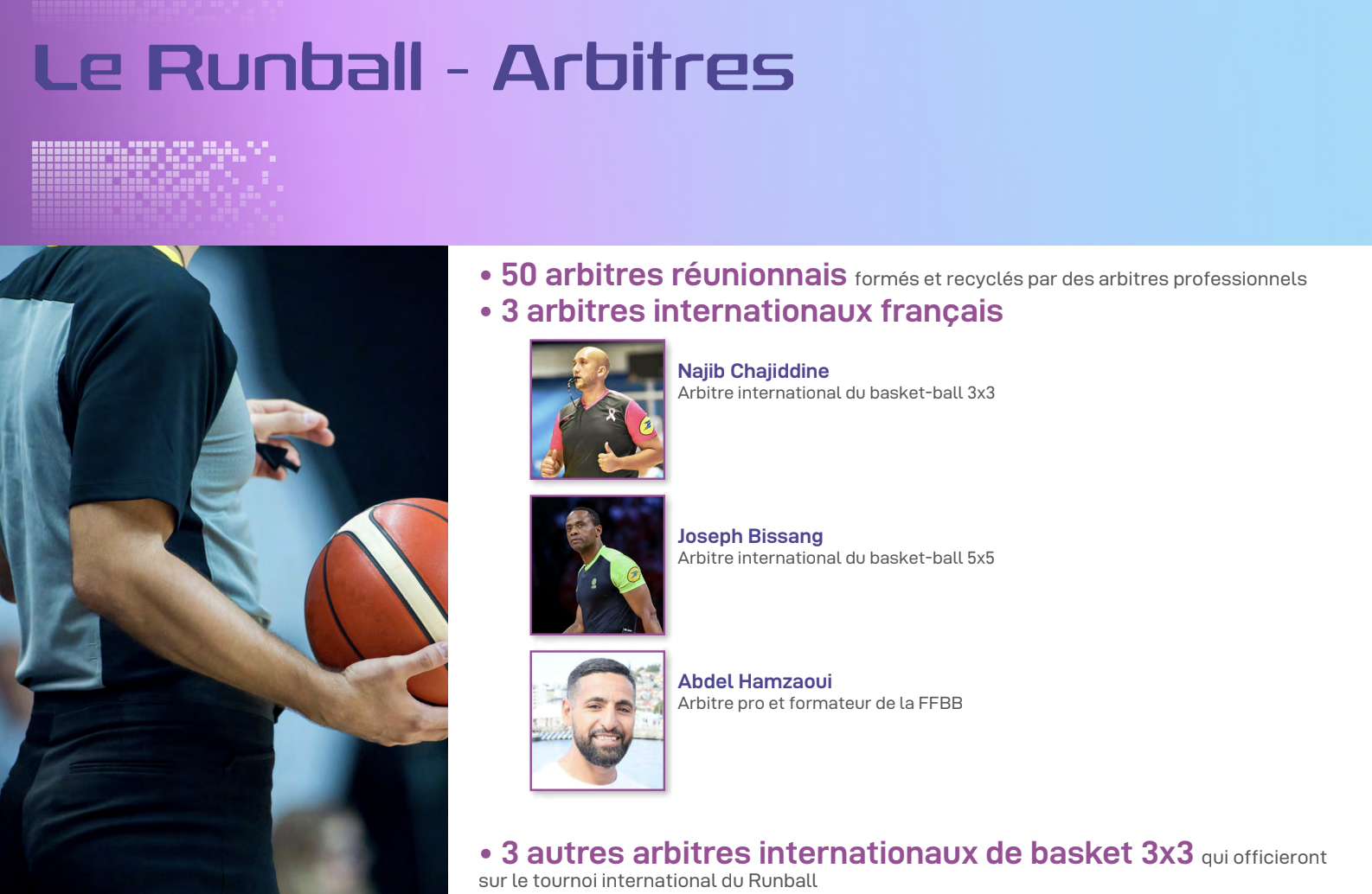 50 arbitres réunionnais formés par des arbitres professionnels, 3 arbitres internationaux français et 3 autres arbitres internationaux de basket 3x3 officieront sur le tournoi international du Runball.