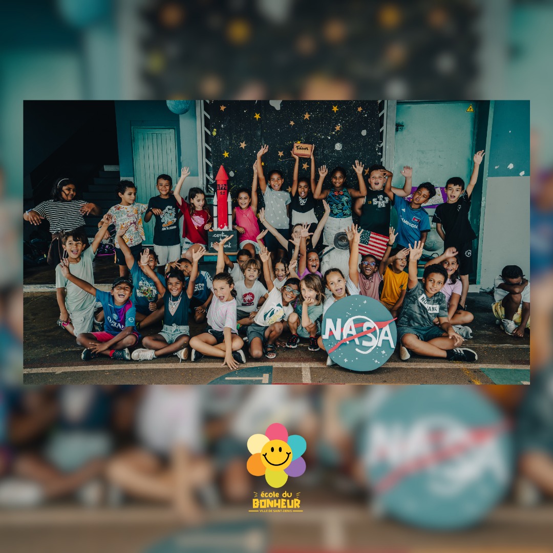 Pour les derniers jours des vacances, on vous emmène à la rencontre des enfants, qui la tête dans les étoiles, parcourent la cour d’école imaginée comme univers spatial. Chasse au trésor spatial, découverte du système solaire et des planètes… Une façon ludique d’apprendre tout en laissant place à leur imagination. Nous publions, ci-dessous, le post de la ville de Saint-Denis. (Photo : ville de Saint-Denis)