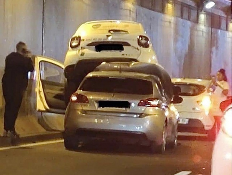 Deux voitures se sont percutées tôt ce jeudi matin 18 août 2022 à Saint-Denis sous la tranchée couverte Mazagran Doret du boulevard Sud. Sous le choc l'un des deux véhicules s'est retrouvé sur le toit de l'autre voiture. Il n'y a pas eu de blessé dans cet accident spectaculaire. Fermée à la circulation pour dégager les véhicules impliqués, la voie de circulation dans le sens Est/Nord a été rouverte dès 9h10, informe la direction régionale des routes (Photo D.R.)
