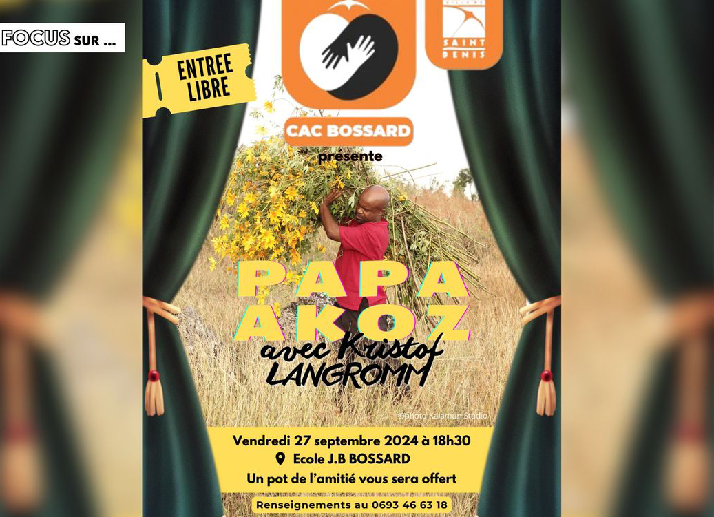 Le spectacle en kréol "Papa akoz " sera présenté à l'école l'école Jean-Baptise Bossard (Saint-Denis) ce vendredi 27 septembre 2024 à l'école Jean-Baptise Bossard à 18h30. "L’objectif (de l'action) est de rendre la culture et le théâtre accessibles à tous, en particulier à celles et ceux qui n’ont que rarement l’occasion d’y assister. Le théâtre s’installe dans le quartier pour permettre à chacun de découvrir cet art, pour que la culture soit à portée de main de tous" commente la mairie de Saint-Denis sur ses réseaux sociaux (Photo : Mairie de Saint-Denis)