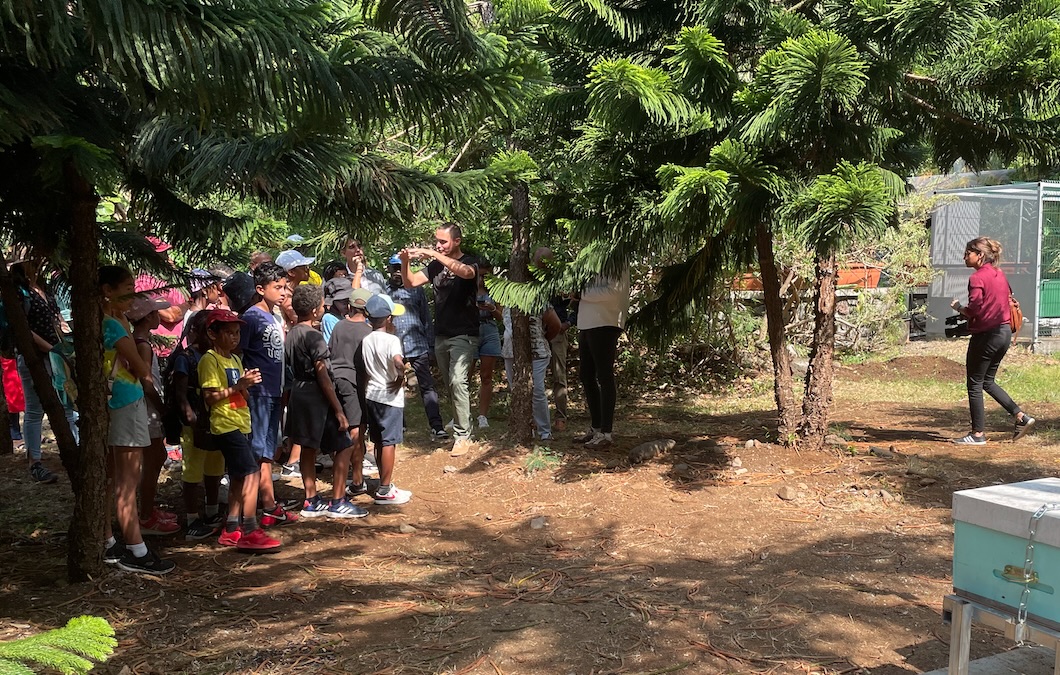 Ce jeudi 12 octobre 2023, la ville de Saint-Denis a inauguré deux nouvelles ruches sur le site de la Pépinière municipale. Les ruches y sont équipées d’un compteur d’abeilles, d’une balance, d’un GPS ou encore d’une station météo afin de procéder à quatre prélèvements au cours de l’année et ainsi étudier la qualité du pollen et l’éventuelle trace de pesticides. Le travail réalisé sur la biosurveillance des abeilles a par ailleurs été présenté à une classe de primaire du quartier de La Source. Nous publions le communiqué de presse (Photo Saint-Denis)