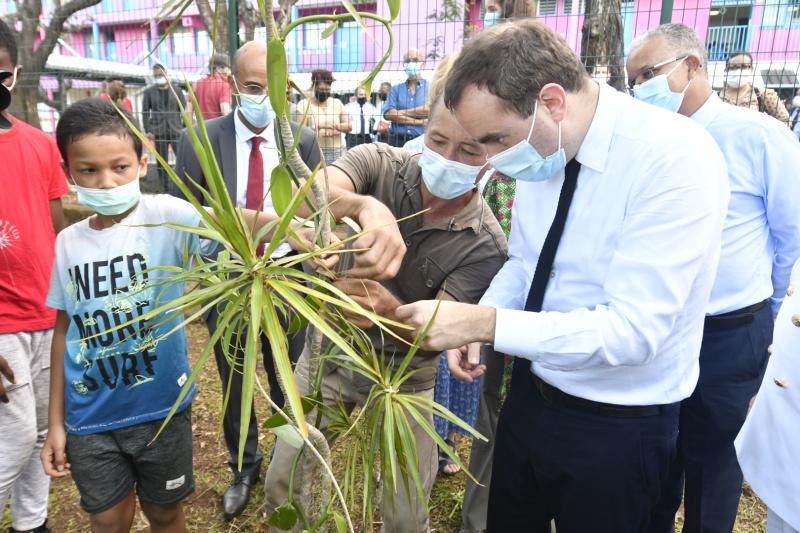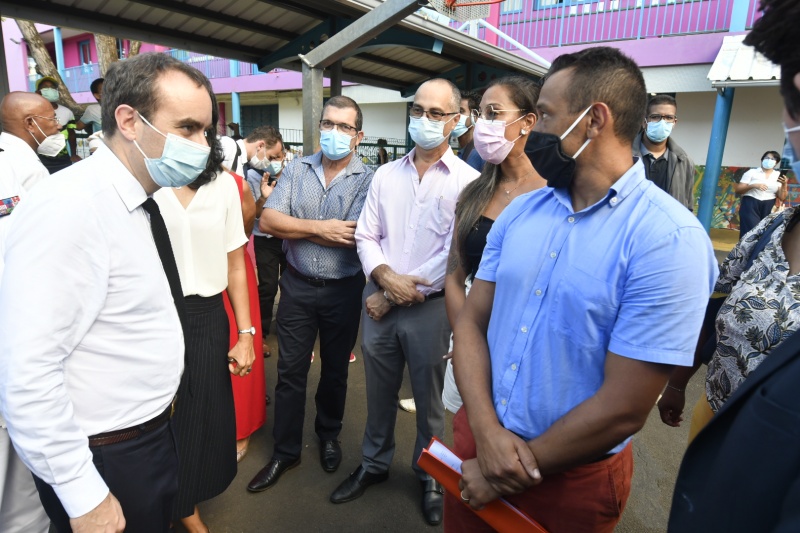 Lors de son troisième et dernier jour de visite à La Réunion, Sébastien Lecornu a tenu une séquence axée sur la sécurité dans le quartier de la Chaumière à Saint-Denis. Ce mardi 15 février 2022, le ministre des Outre-mer y a présenté un plan de sauvegarde de ce quartier et a fait le point sur le bilan du groupe de partenariat opérationnel mis en place. Construit en 1963 à Saint-François, le quartier est composé de cinq immeubles, une vingtaine de maisons et une école. Le ministre s'y est rendu dans l'après-midi. (Photos Imaz Press)