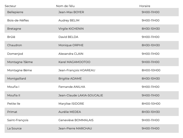 "Afin d'être toujours plus proches de vous et de vos préoccupations, les élus de quartiers vous accueillent ce samedi 15 mai 2021 ! Tous les samedis matin, vous avez la possibilité de prendre rendez-vous avec votre représentant. Contactez dès maintenant votre mairie annexe pour convenir d'une date d'audience !" indique la ville de Saint-Denis dont nous publions le communiqué ci-dessous. (Photo d'illustration rb/www.ipreunion.com)