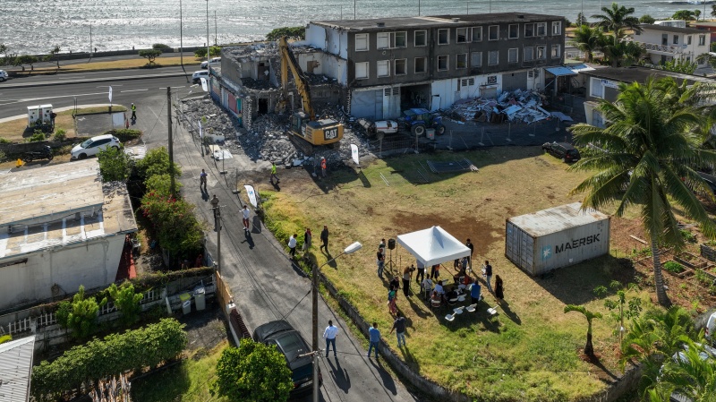 "C’est un immeuble vétuste que tout le monde voit. Nous le détruisons parce que nous sommes dans le cadre d’un aménagement de la ville qui s’appelle le programme Prunel", explique la mairie de Saint-Denis, Ericka Bareigts. Mais avant d’aménager, place aux travaux. "On est sur une phase de travaux. Là nous commençons à écrire le projet d’aménagement pour transformer une ville ou un quartier", explique la maire de Saint-Denis. L’objectif final, ouvrir le quartier vers la mer, vers le futur Dionyparks. Mais également "ouvrir sur l’est et l’ouest de la ville avec le transport en commun, que nous voudrions moderniser avec la Région et la Cinor". Écoutez :