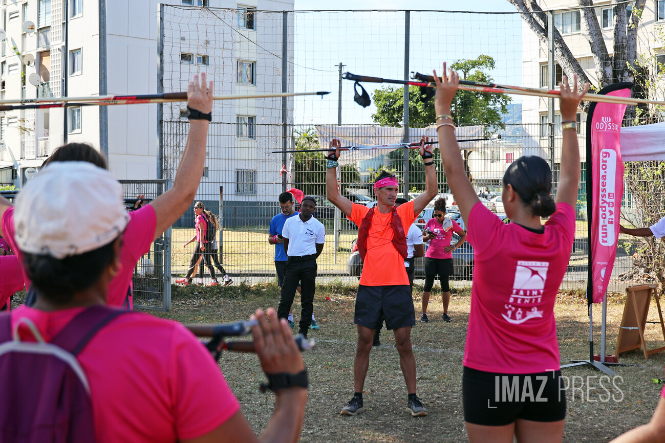 A l'occasion du début d'octobre rose, mois dédié à la lutte contre le cancer du sein, une journée d'animation est organisée par Odysséa à Saint-Denis ce samedi 30 septembre 2023. Cours de zumba, marche nordique, natation, cyclsime : de nombreuses activités ont été programmées tout au long de la journée au Chaudron (Photo sly/www.imazpress.com)