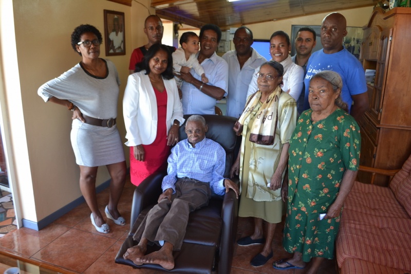 Ce dimanche 31 juillet 2016, Antoine Augustin Ludovic a fêté ses 101 ans. Né à Grand Fond, il a célébré son anniversaire en compagnie de sa famille proche. Jacqueline Silotia, adjointe au marie y a aussi participé, en offrant au centenaire un fauteuil en cuir.