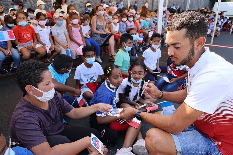Discours, questions des marmailles et Marseillaise en l'honneur du champion ont rythmé cette matinée à l'école de l'Etang. Donavan Grondin s'est présenté sous les yeux ravis des élèves saint-leusiens.