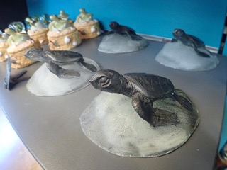 Les tortues vertes sont de retour à La Réunion depuis 2004. Pour marquer cet événement et contribuer au financement des programmes de réhabilitation des plages de ponte, Kélonia s'associe à l'artiste Jean-Pierre Palencia et met en vente des moulages des tortues nées sur l'île. Ils sont en vente exclusivement à la boutique de Kélonia. (photo Kélonia)