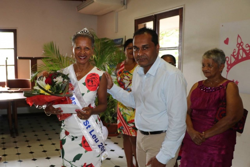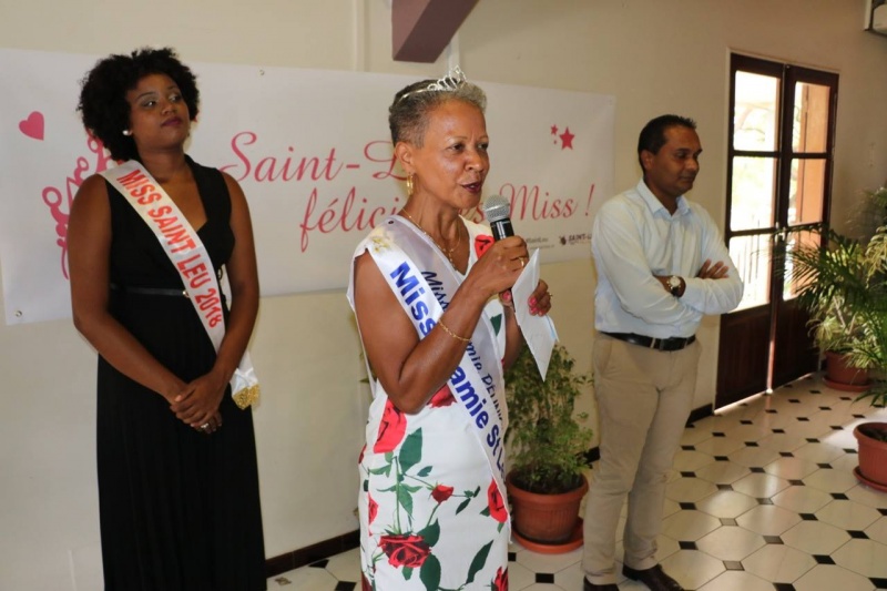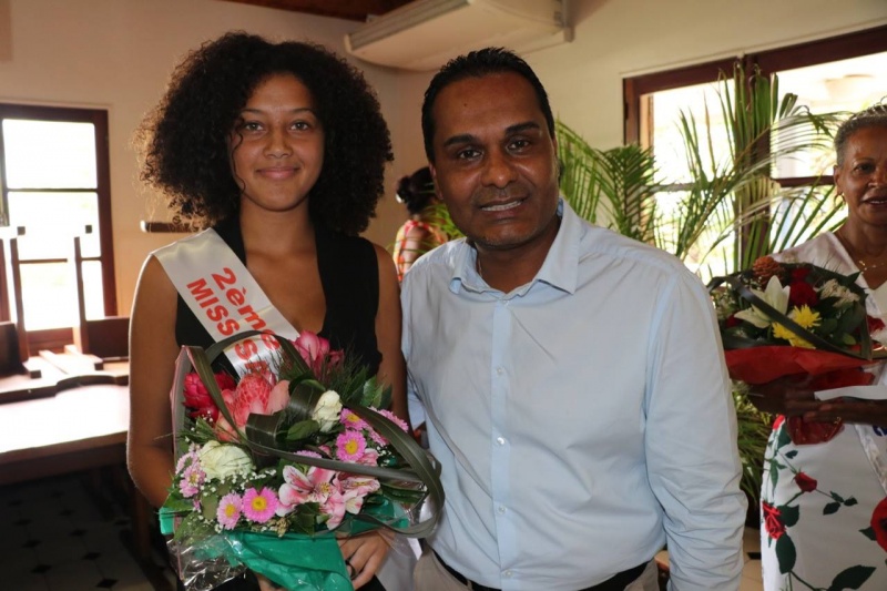 Le Maire de Saint-Leu a tenu a félicité les Miss Saint-Leu qui représentent la commune dans les différentes manifestations, à commencer par Miss Mamie Saint-Leu sacrée Miss Mamie Réunion à Miel Vert le 4 janvier dernier qui cet après midi aux côtés de ses deux dauphines Mesdames Indiana et Carabin met en l'R Saint-Leu. Denise Lebourg, Miss Mamie Réunion, a félicité le Maire et les services du CCAS qui avaient organisé en fin d'année dernière pour la première fois ce concours à Saint-Leu. Bruno Domen a également félicité Miss Saint-Leu, Marjorie Lenclume accompagnée pour l'occasion de sa 2ème dauphine, Emma Boyer, en souhaitant qu'elle puisse participer et représenter la Ville tout au long de l'année dans les différentes manifestations tout en ne négligeant pas ses études. Les miss ont reçu un présent avant de poser aux côtés de l'ensemble des élus pour la photo de groupe.