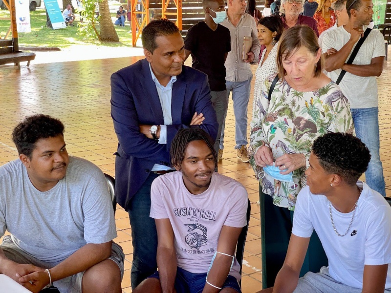 La matinée a débuté avec la présentation du Contrat d’Engagement Jeune (CEJ), en présence de la Sous-Préfète de Saint-Paul, Madame Sylvie Cendre, du Président de la Mission locale de l’Ouest en la personne du Maire de Saint-Leu, Bruno Domen, de la Directrice régionale du Pôle Emploi, Madame Angélique Goodall et des partenaires.